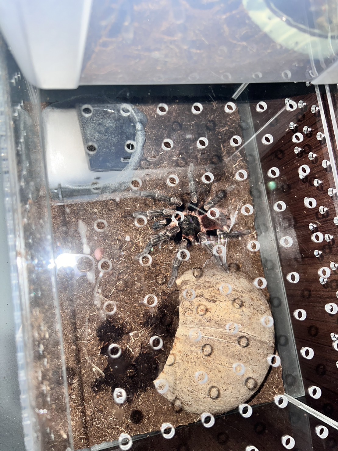 免運費 玻利維亞紅尾毛蜘蛛001買蜘蛛送飼養盒內附蜘蛛遮蔽物、水盆、底材(如圖)(天然哥的水族館)